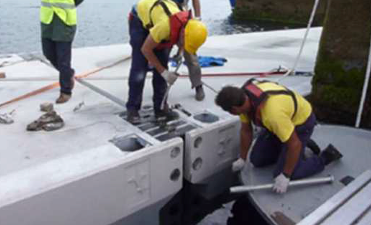 Dentro del servicio de mantenimiento para infraestructuras flotantes, definimos para cada instalación un plan a medida en función de las características de la instalación (año de construcción, condiciones de trabajo debido a meteorología, disponibilidad de personal propio... ).