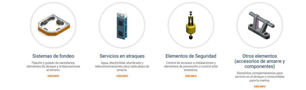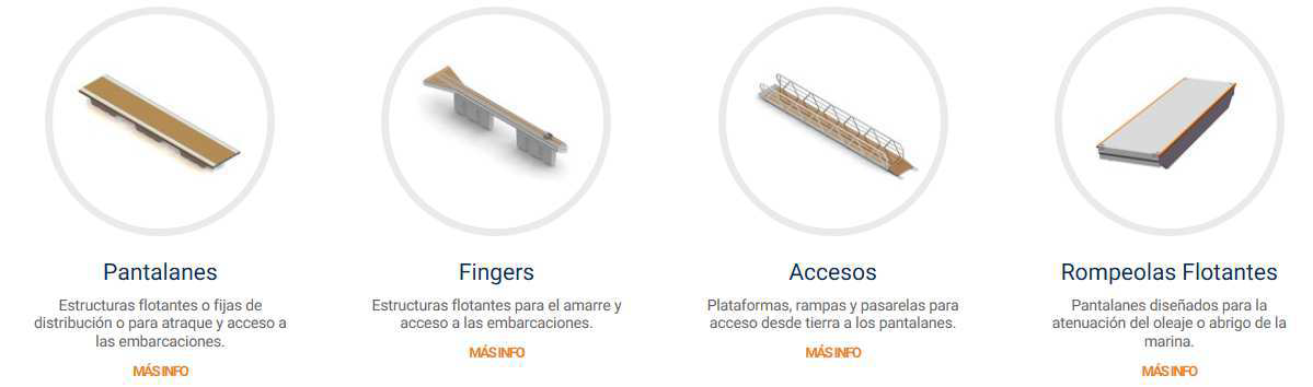 - Estructura de fingers en pantalanes un puntos de unión entre estructuras y elementos de fondeo (anillas, cadenas, etc.)