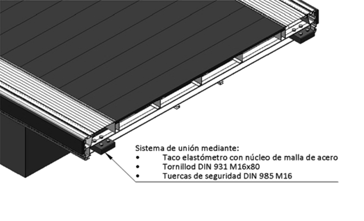 - Elementos de unión entre módulos de pantalán y entre módulos de pantalán y fingers.